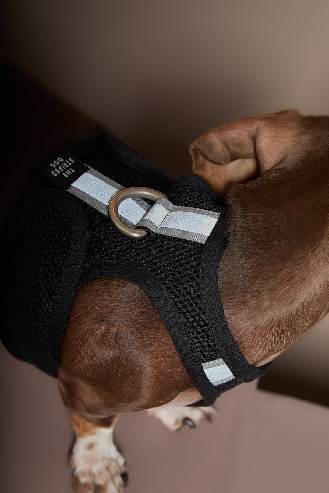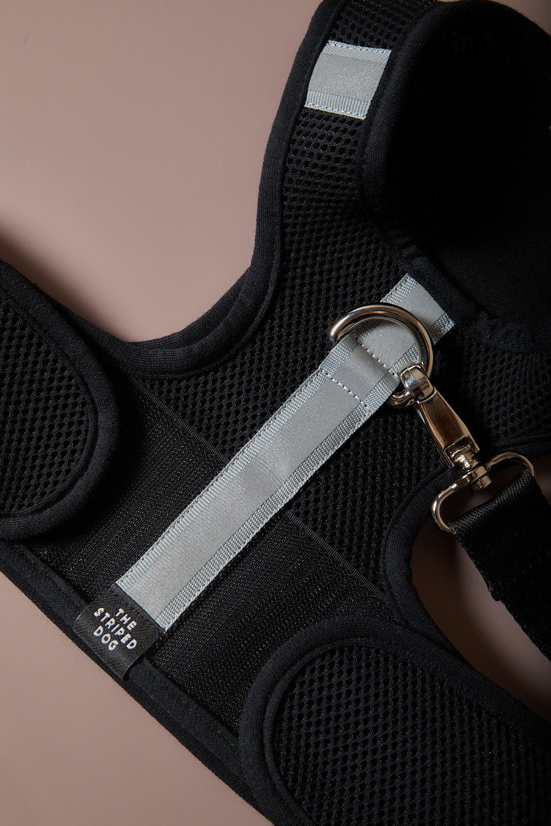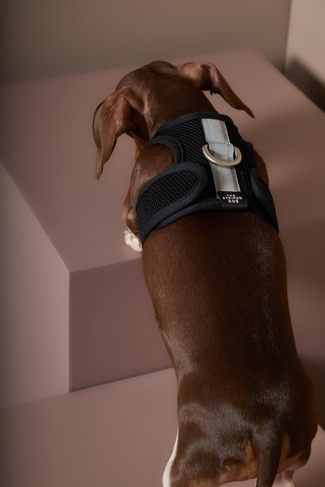 Arnés de neopreno con malla transpirable, velcro ajustable y cinta reflectiva en la espalda y los hombros