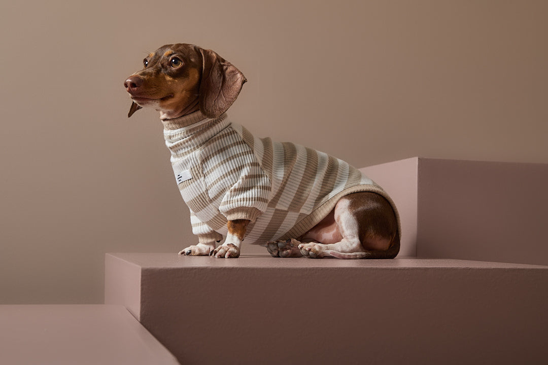 Sueter Rayas Arena y Crema Cuello Tortuga Salchicha REED