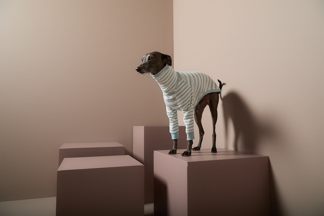 Sueter Rayas Turquesa y Crema Cuello Tortuga Galgo Italiano / Whippet REED