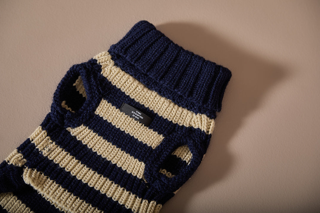Suéter tejido a rayas tipo chaleco cuello tortuga